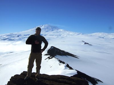 The glory shot on top of Castle Rock with Mount Erebus looming in the background.