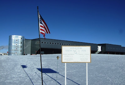 The South Pole Station sits at about 9300 feet, but because it's located at the earth's pole it has a high pressure altitude making it akin to being at around 10,500 feet. The station's lowest temperature while i was there was -75 F factoring in the wind chill and -57 F ambient.